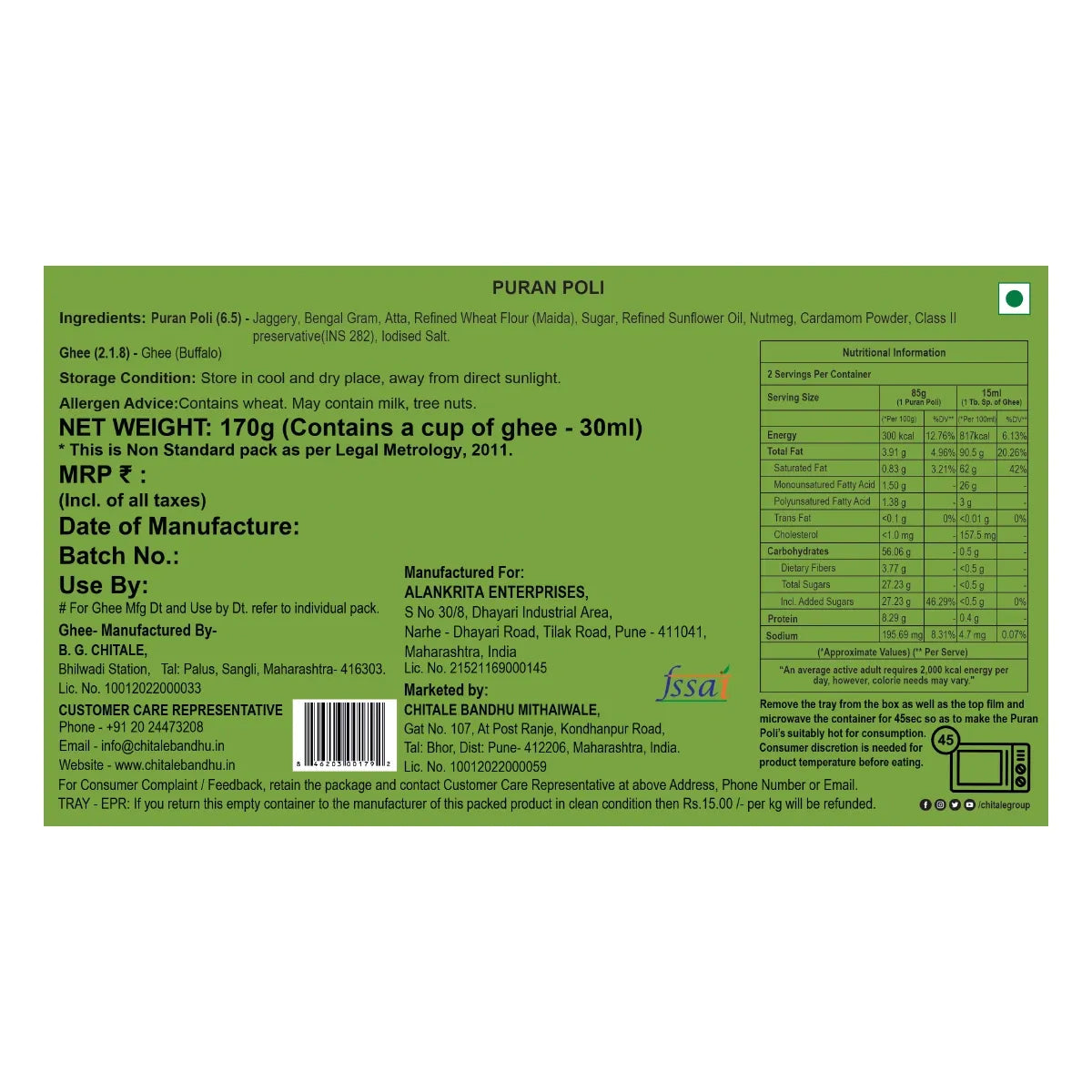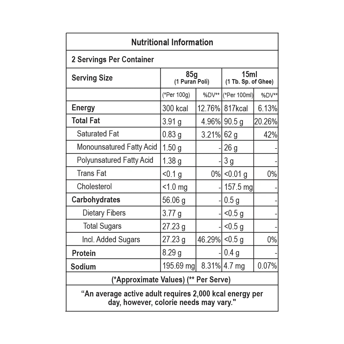 Enjoy the traditional flavor of Puranpoli, a sweet flatbread filled with a spiced lentil and jaggery mixture. Perfect for festive occasions or as a special treat, this delicacy brings the taste of Indian homes to yours.