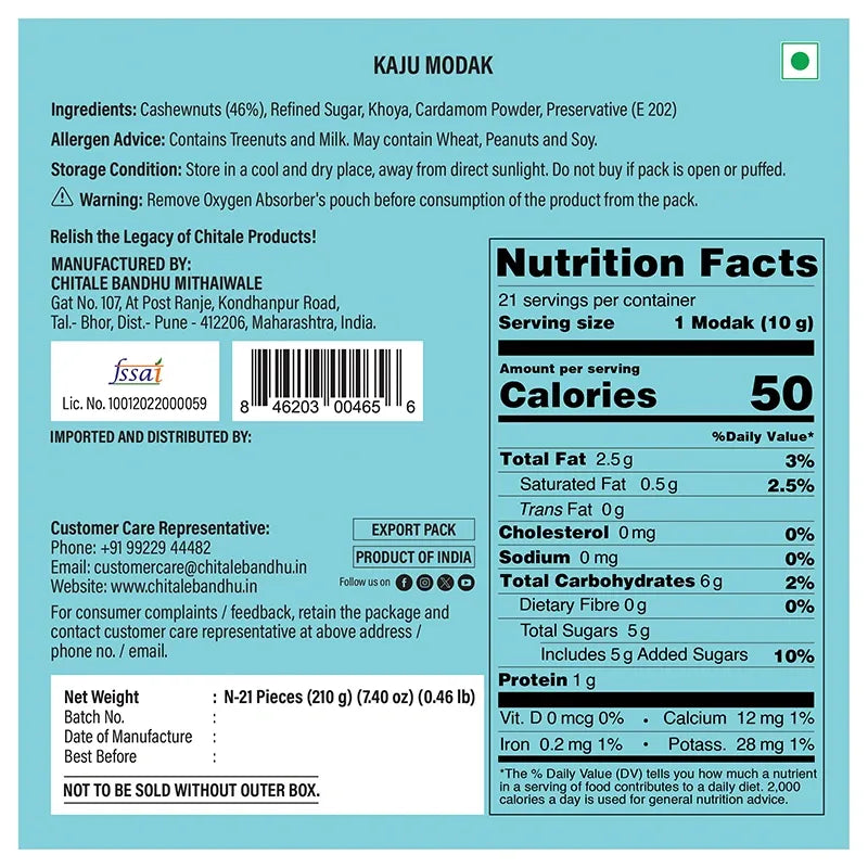 Delight in the creamy texture of Kaju Modak, a cashew-based sweet shaped like the traditional modak. Perfect for festivals and family gatherings, this treat brings the joy of Indian celebrations to your table.