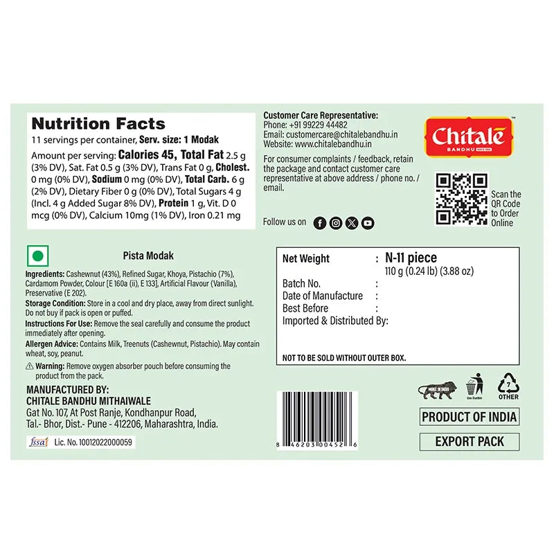 The nutty richness of Pista Modak, filled with pistachio and milk solids for a delightful taste. This festive sweet is perfect for celebrations and gifting. Experience the flavors of India with every bite.