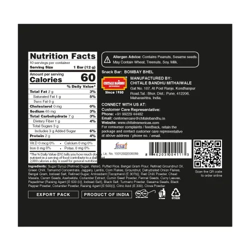 Take a bite of Bombay with the Binge Bar - Bombay Bhel by Chitale Bandhu, a compact, flavor-packed snack that captures the magic of Mumbai street food in every crisp, crunchy morsel. Crafted by the legendary Chitale Bandhu, this snack bar blends puffed rice, roasted peanuts, lentils, sev, and a burst of traditional spices to deliver a zesty, tangy explosion of taste.