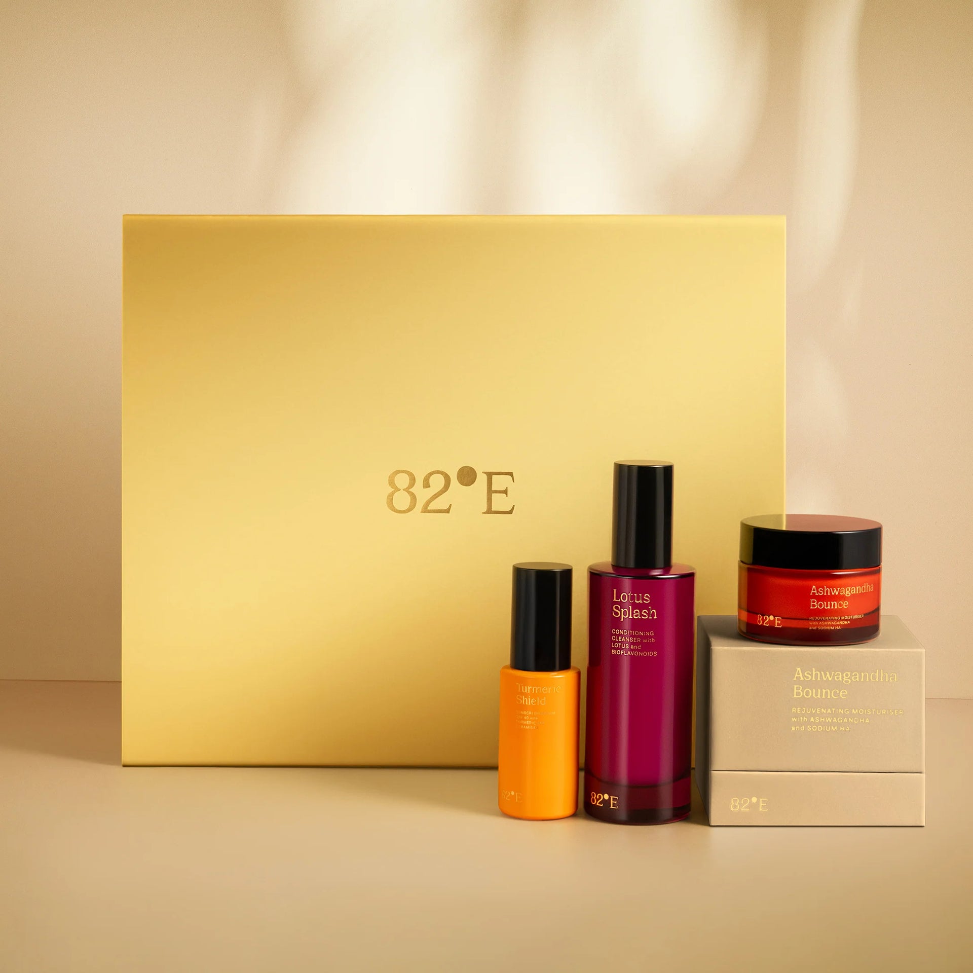 Give the gift of radiant, healthy skin with the 82°E Skincare Gift Kit by Deepika Padukone. Thoughtfully curated for a complete skincare routine, this mini kit features luxurious products designed to cleanse, hydrate, and protect your skin: