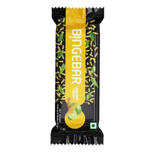 Refresh your senses with the Bingebar - Lemony Twist, a tangy snack bar infused with the zest of lemons and a blend of nuts and seeds. Ideal for a light, flavorful snack.